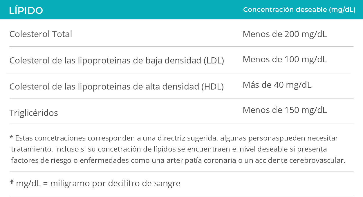 Aunque no existe un límite natural, los siguientes valores son los deseables en la población adulta: